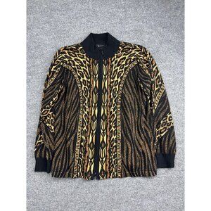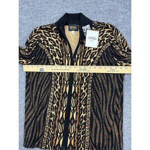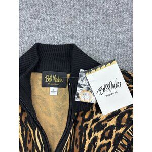 Bob Mackie Wearable Art Sweater Womens Large Black Brown Full Zip Animal Print