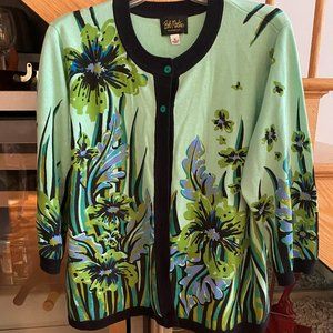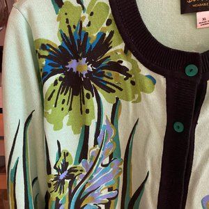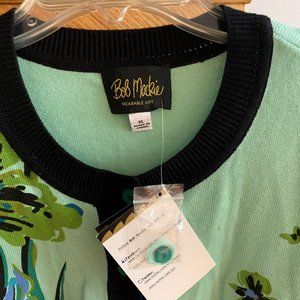 Bob Mackie Wearable Art Sweater - XL NEW with tags Mint Green with Black Trim