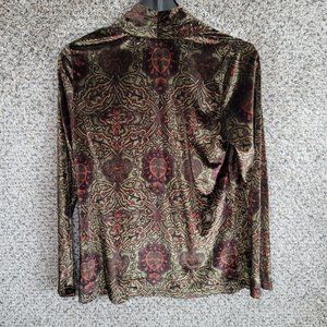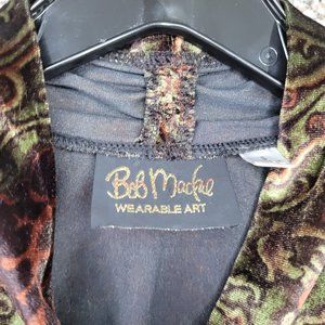 Bob Mackie Wearable Art Top Womens Small Green Velour Long Sleeve V-Neck Ladies