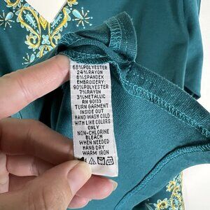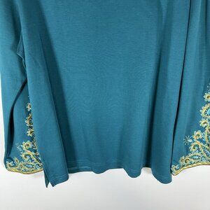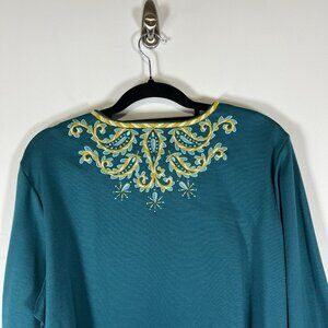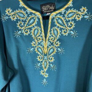 Bob Mackie Wearable Art Top Women's XL Turquoise Stretch Paisley Embroidered NWT
