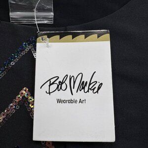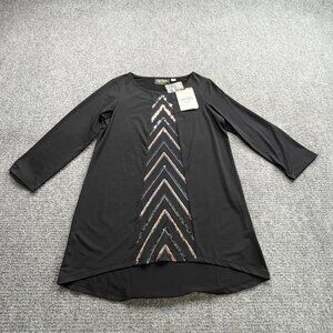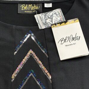 Bob Mackie Wearable Art Top Womens XXS Black Tunic Sequin Chevron Party Formal
