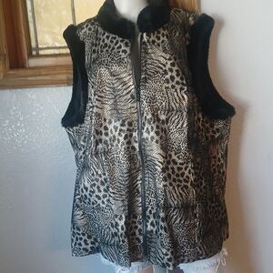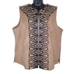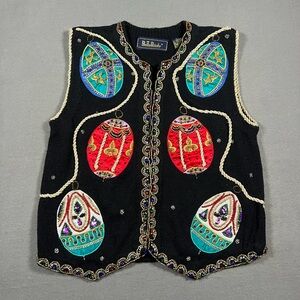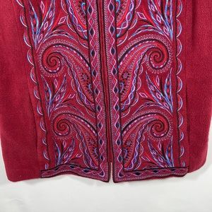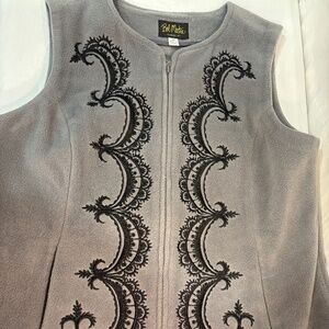 Bob Mackie Wearable Art vest. Fleece vest with embroidered scroll pattern. Size Medium. Very good condition.
