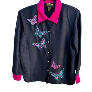 Bob Mackie Wearable Art Vintage Silk Embroidered Butterfly Appliqué Shirt Blouse