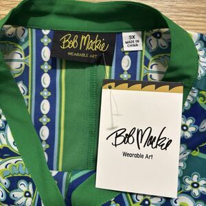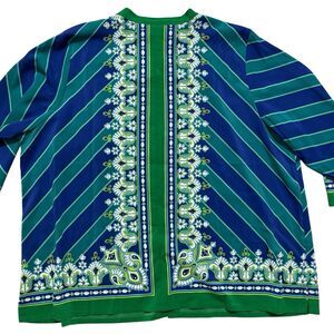 Bob Mackie Wearable Art Women’s 3X Green Floral Stripe Blouse Top Button Up NEW