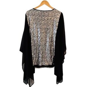 Bob Mackie Wearable Art Womens Chiffon Sequin Top Poncho 2XL Sheer Flowy Disco