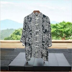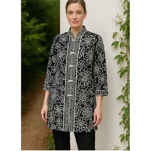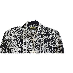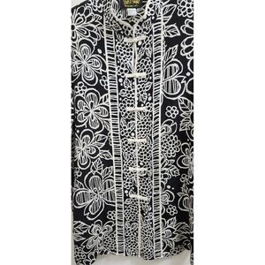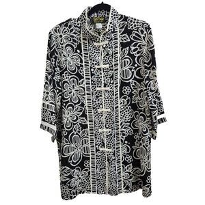 Bob Mackie Wearable Art Women's Silk Blouse Tunic Black Floral Cheongsam Button