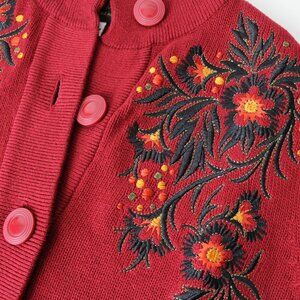 Bob Mackie Wearable Art floral embroidered womens cardigan sweater red XXS 2XS