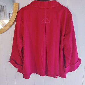 Artfully Constructed with lavish Bob Mackie Buttons at Cuffs and Front Panel, a sweeping full swing hem gives this jacket a 50's charm. The back is not neglected either as it has an inverted pleat to give the jacket less bulk. This would pair well with a black pencil skirt or slacks. Size 1X NWT