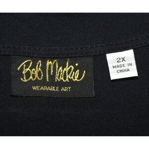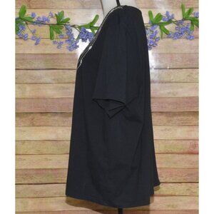 Bob Mackie Wearable Black Short Sleeve Blouse Top Size 2X Silver Necklace Design