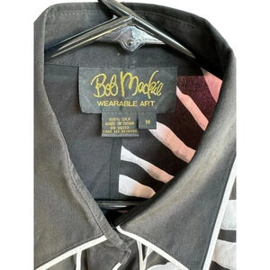 Bob Mackie Women's Black Animal Print Long Sleeve Button Down Silk Shirt Size M