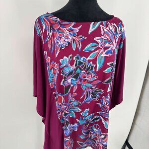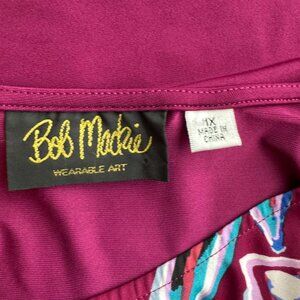Bob Mackie Womens Floral Tunic Top Size 1X Stretch Colorful Work Party Loose Fit