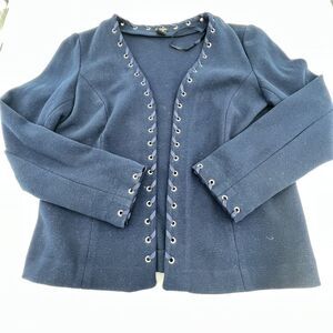 Bob Mackie Womens Jacket Size L Navy Blue Open Front Cardigan Long Sleeve