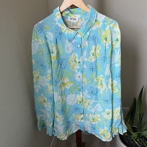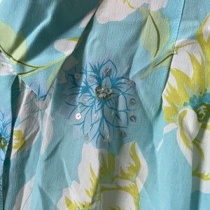 Bob Mackie Womens Plus Size 3X 100% Silk Button Down Top Shirt Sequin Floral L/S