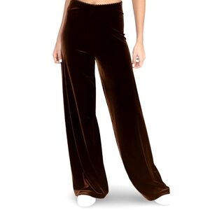 Bob Mackie Women’s Velvet High-Rise Wide-Leg Pull on Brown Trousers Large EUC