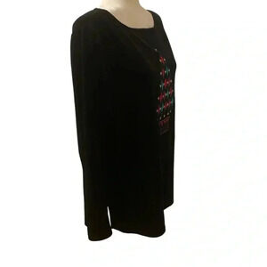 Bob Mackie Womens Vintage Velour Christmas Tree Rhinestone Top Size Large Black