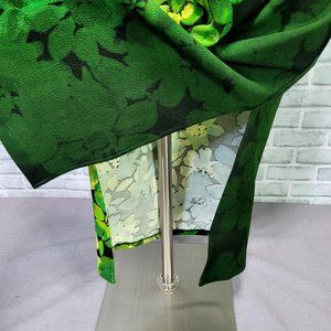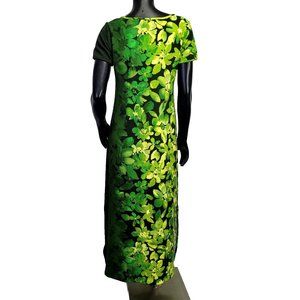 Bob Mackie Womens XSP Green Ombre Floral Crepe Midi Casual Beach Vacay Dress
