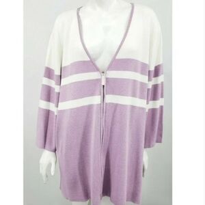 Bob Mackie wearable art deep v neck zip up sweater, purple, stripes women size medium. NWT.
