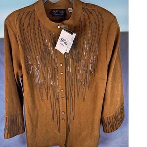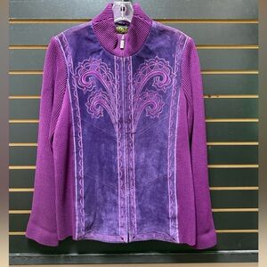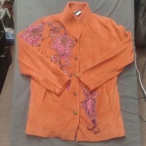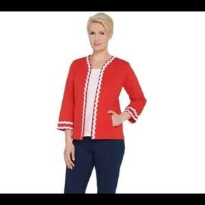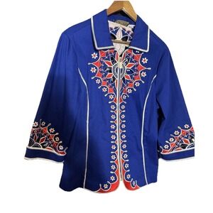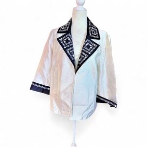 Bob Mackie wearable art jacket, each design is in my fashion collection is a piece of wearable art, with a whisper of opulence, delicately feminine, new,body 97% cotton 3%spandex, Embroidery, 100% polyester, QVC style