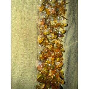 Bob Mackie wearable art yellow vintage sweater. The front and neckline feature a faux pearl bead and gold yellow color sequin design. Slim fit stretchy sweater with 3/4 length sleeves. It is a rayon and nylon blend and it is lightweight. Perfect spring and summer color. Excellent condition and I found no flaws.
