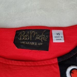 Bob Mackie Black & Red Colorblock Beaded Flower Blouse, Sz XS