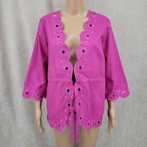 Bob Mackie Y2K Pink Eyelet Kimono Cardigan Cinched Waist Cotton Jacket NEW