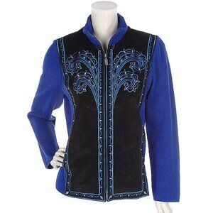 Bob Mackie's Embroidered Washable Suede Jacket with Knit Sleeves 14717