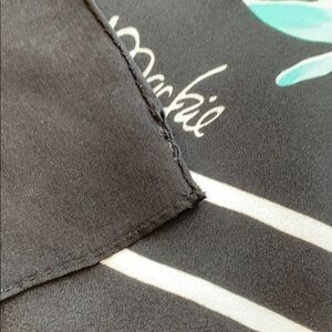 Fabulous mint condition Bob Mackie Black and White background with a woman with pink lavender flowers. Beautiful enough to frame. Hand rolled hem