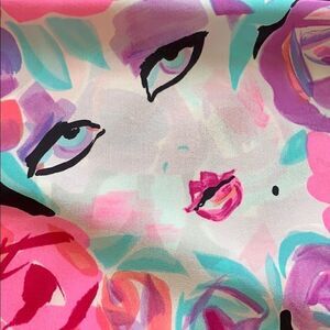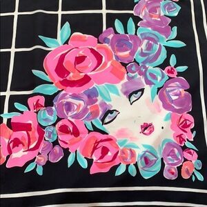 Bob Mackie woman with flowers silk art scarf
