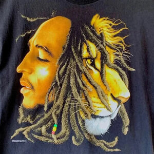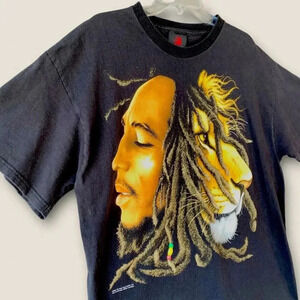 Bob Marley Y2K 2007 Lion Head Print Zion Rootswear Short Sleeve Crew Tee Shirt