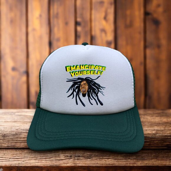 Bob Marley Emancipate Yourself Unisex Trucker Hat Green Snapback Reggae Music