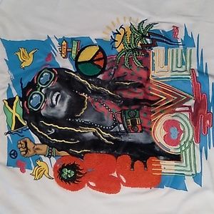 Bob Marley One Love Graphic Puff Print Distressed White T-Shirt Sz 3XL