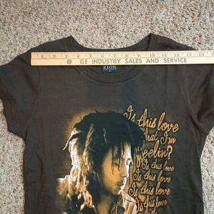 Zion Roots Wear - Bob Marley Shirt with song lyrics " Is this Love that I'm feeling? Is this love"