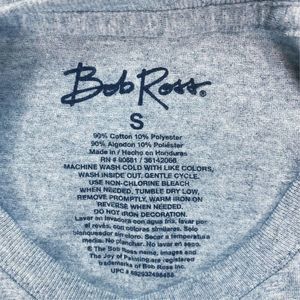 Gray crewneck short sleeve tee, colorful Bob Ross graphic and quote on front, back is blank, pullover style