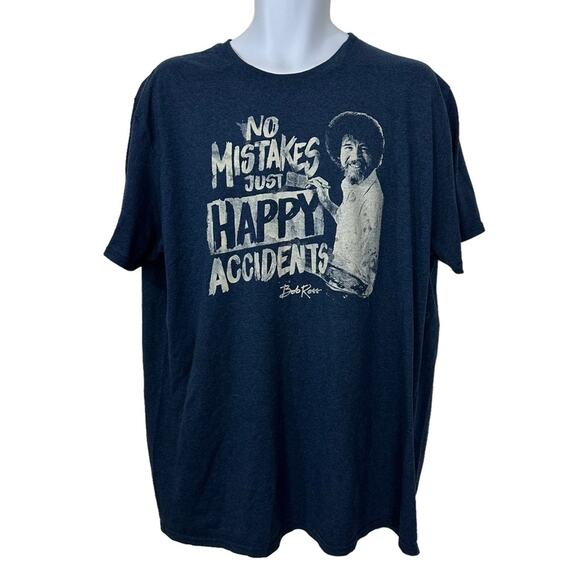 Bob Ross Graphic Tee T Shirt No Mistakes Just Happy Accidents Blue Sz 2XL XXL