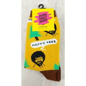 Bob Ross Happy Trees Oooh Geez! Women's Crew Socks, Gold, One Size Fits Most
