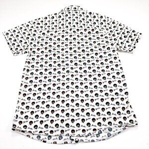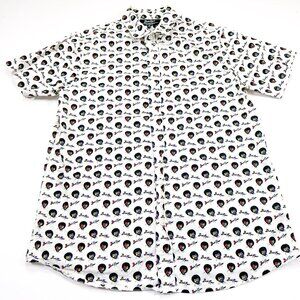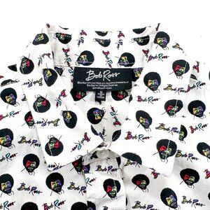Bob Ross Shirt Men's Size S White Button Up Short Sleeve All Over Face Logo
