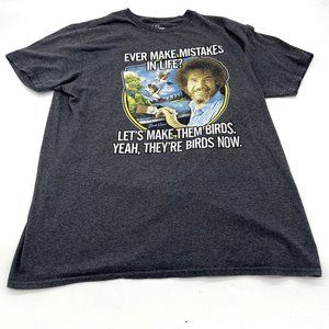 Bob Ross T-Shirt Mens Large Gray Graphic Print Birds Painting Short Sleeve 90681
