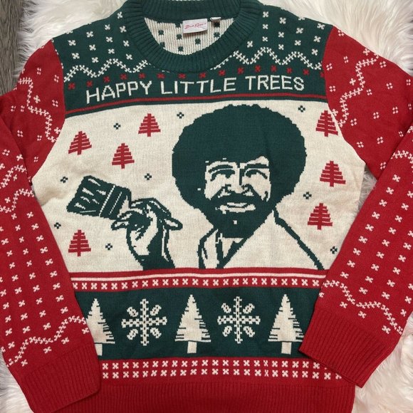 Bob Ross Ugly Christmas Sweater Adult MEDIUM M Painting Holiday Trees Afro NEW