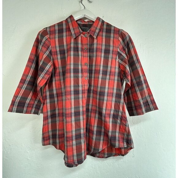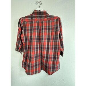 Bob Scales Women Plaid Popover Blouse Shirt Medium Red 3/4 Sleeve Collar Casual