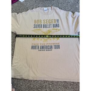 The product is a XL T-shirt featuring Bob Seger and the Silver Bullet Band Face The Promise Tour from 2006/07. The shirt is made by the brand Tennessee River and is of regular fit with short sleeves. The color of the shirt is khaki and it is designed for men who are fans of the band's theme. This T-shirt is a stylish and comfortable way for fans to show their support for Bob Seger and the Silver Bullet Band.