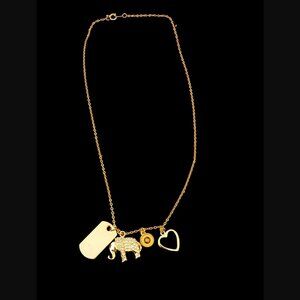 Bob Siemon Designs BSD Gold Tone Multi Pendant Elephant Heart Dog Tag Necklace