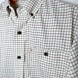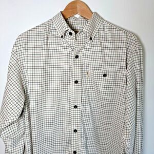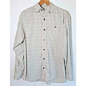 Bob Timberlake Men Medium Plaid Button Down Shirt Ivory Multi Color Cotton