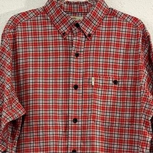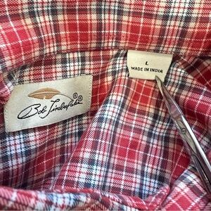 Bob Timberlake Mens Red Plaid Button Up Top Size Large, Great Preowned Condition
