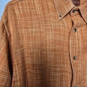 Bob Timberlake Shirt Men’s Button Up Large Tall Orange Brush Popper Lumberjack Plaid Weave, soft, well made