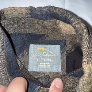 This Bob Timberlake men's XL long sleeve button-up shirt features a colorful plaid flannel design, perfect for casual occasions. Made from cotton flannel, the shirt is machine washable for easy care. With a collared neckline and point collar style, the classic fit shirt also includes pockets and is ideal for everyday wear.