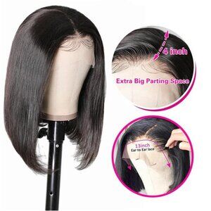 *Hair Material: 10A Grade Brazilian Vingin Human Hair Wigs Straight Bob Lace Front Wigs