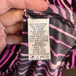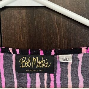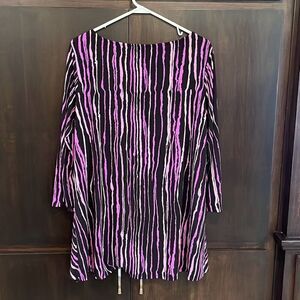 This top is made by Bob Mackie. It’s a black v-neck with purple & pink stripes. Size large and in very nice pre owned condition. Smoke and pet free home.