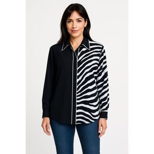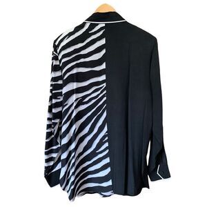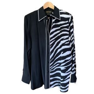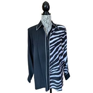 Bob Mackie Silk Mixed Zebra Print Button Up Shirt Black, White Size S