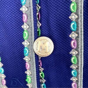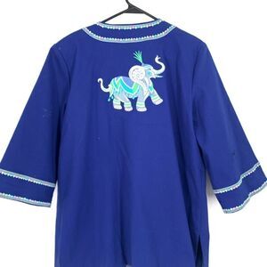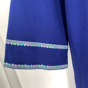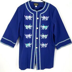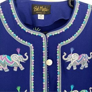 Bob Mackie Size M Wearable Art Royal Blue Embroidered 3/4 Sleeve Elephant Jacket