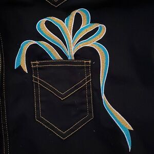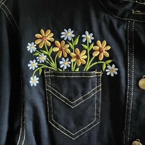 Embroidery adorned Shacket (shirt+jacket) ~ bright colors, gold buttons and gold threading add to the details of this wonderful wearable art piece